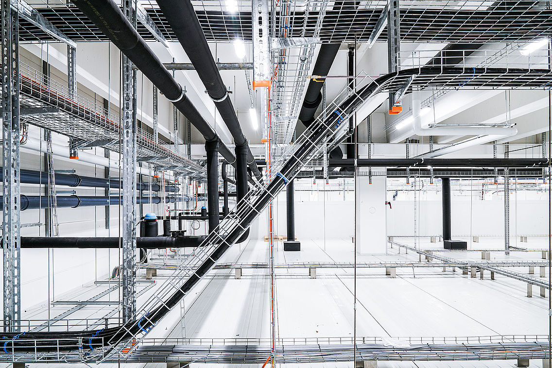 کابلها با نظم درون سینیها قرار میگیرند. استفاده از بستهای پلاستیکی و برچسبگذاری توصیه میشود.
